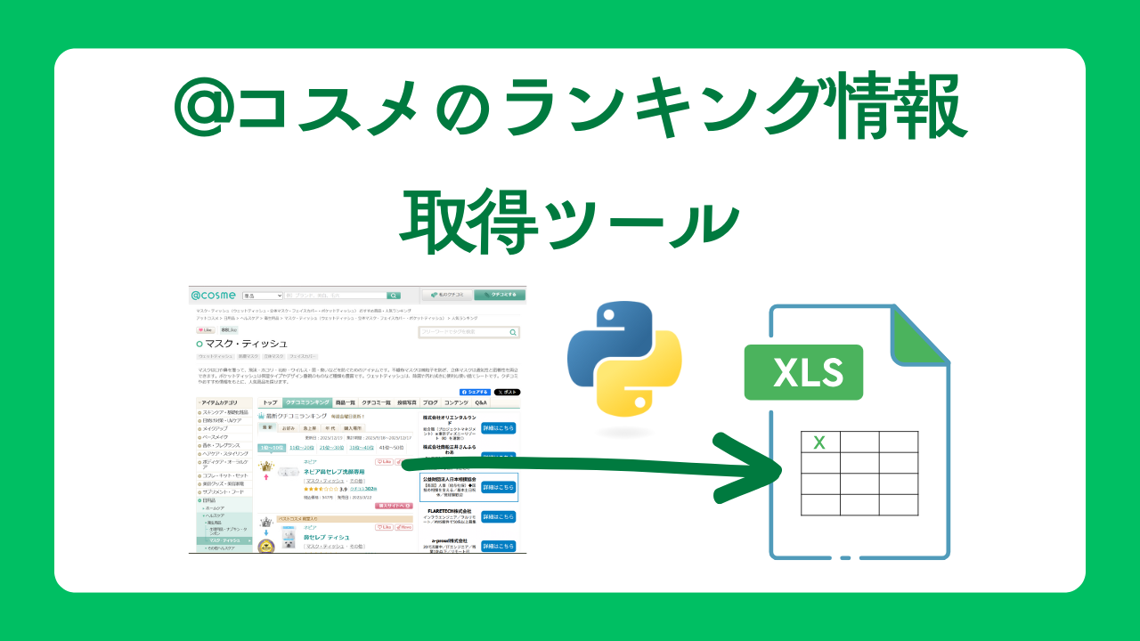 Pythonで@コスメサイトのランキングから商品名とその商品紹介ページのURLを取得するツールを作成したので、その機能や作成背景(理由)をまとめて記事にしました。