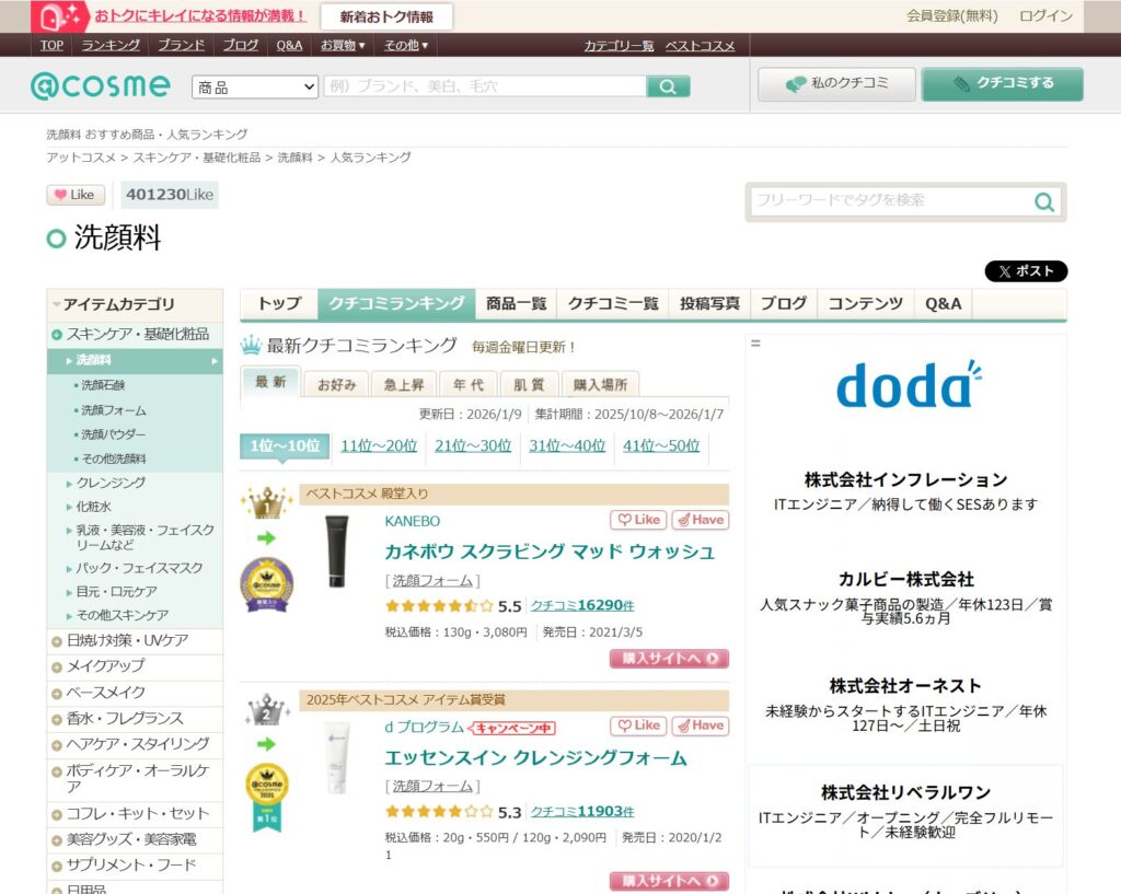 - @cosmeランキングページから商品名